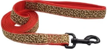 Coastal Pet Ribbon Weave Leash, Brown Leopard on Red, 1″ x 6′
