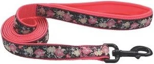Coastal Pet Ribbon Weave Leash, Pink Yellow Flowers on Black, 1″ x 6′