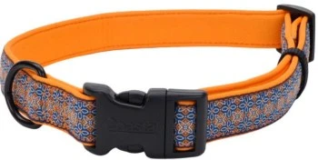 Coastal Pet Ribbon Weave Collar, Morrocan Tile Blue and Orange, 5/8″ x 8″-12″