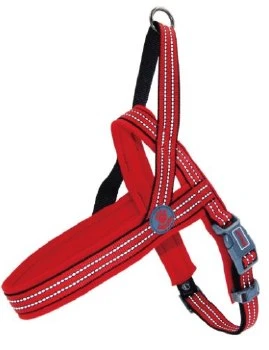 Vario neoprene harness is comfortable, light, easy to put on and off, quick drying harness for all dogs. Highly visible reflective stitching night time safety. Neoprene is padded for the soft touch for your dong’s skin. Specially made for the active dog whether he is exploring woodland, swimming in the sea or pottering around town. Handle on top makes it easy to grab hold of the dog when needed as well as o-ring to click the leash on the dog. The harness is adjustable around the chest area and there should always be a little daylight around the neckline to allow your dog to move freely. Plastic side buckle on the chest strap that quickly clicks shut and stays put. Designed with adjustable tri-glides on girth straps for fast adjustment and custom fits for different girth sizes. Solid and vibrant colors are easy to see at all.