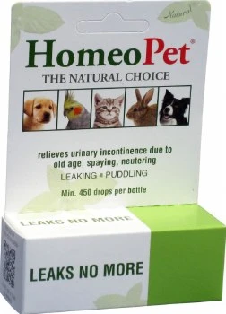 Homeopathic drops offer relief for dogs, cats, birds, and small animals with urinary incontinence.