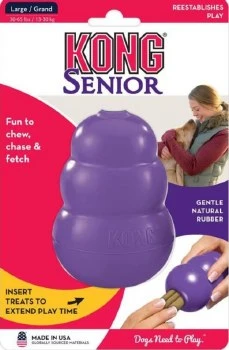 Provide your senior pup with a fun plaything with the KONG Senior Dog Toy. The unique all-natural Senior rubber formula is customized for your aging pup’s teeth and gums, designed to provide a comfortable chewing outlet. The erratic bounce offers enrichment to satisfy your furry friend’s instinctual need to play. Want to extend play time? And to add some extra fun into the mix, this toy can be stuffed with KONG’s Stuff’N Senior Easy Treat, Snacks or Ziggies (sold separately) or any of his favorite rewards like peanut butter, yogurt or kibble!