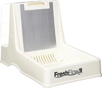 Cats love running water! Many cats dislike standing water, even if it’s fresh and this can cause them to drink far too little. The Fresh Flow II with it’s natural flow of running water encourages cats to drink. Urinary tract disorders are a common occurrence in cats. Increasing their fluid intake can help to prevent this uncomfortable condition. For cats that do not have urinary tract concerns, the Fresh Flow II Fountain is an enjoyable way to meet daily hydration needs.