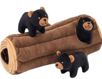 For a wild time, simply put the trio of squeaky bears inside the Zippy Burrow™ Black Bear Log and watch as your pup works to dig them out. Once your playful pup has them all out, they’ll be begging you to put them back in again and again for hours of fun. It’s the perfect interactive toy for keeping your dog busily engaged in hide-and-seek play that prevents boredom and promotes mental stimulation. This extra-large interactive hide-and-seek toy comes with 1 log and 3 squeaky black bears.