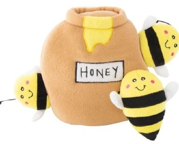 Doggo’s playtime will be abuzz with excitement when they dig into the Zippy Burrow™ Bees in Honeypot! Once your playful pup has all the busy little bees out, they’ll be begging you to put them back in again and again for hours of fun! It’s the perfect interactive toy for keeping your dog busily engaged in hide-and-seek play that prevents boredom and promotes mental stimulation! This interactive hide-and-seek toy comes with 1 honey pot and 3 small squeaky bees.